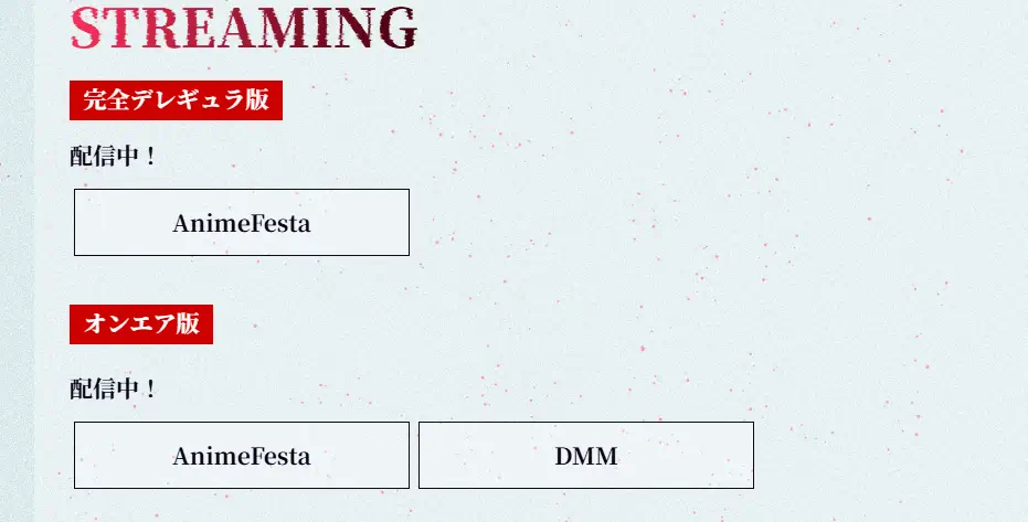 公式サイトでも書かれているように、規制解除版を見たいならアニメフェスタ一択です。